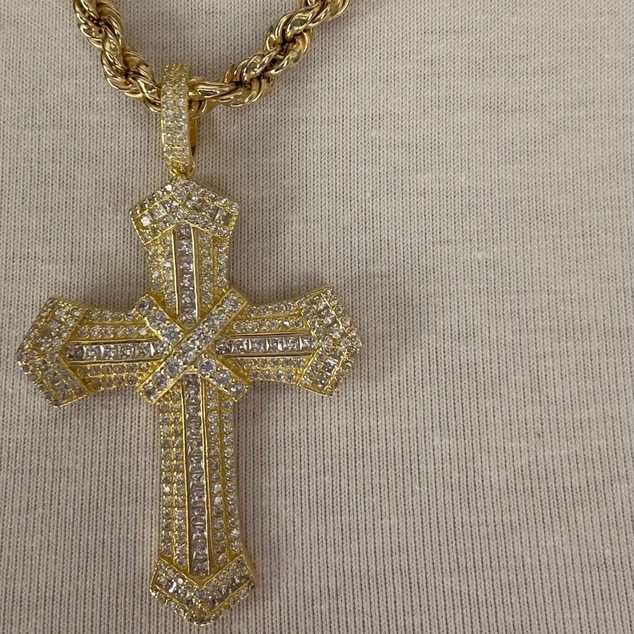 Tipologia di prodotto: Collana in Argento 925 con finitura dorata con catena Torchon e croce pendente con zirconi incastonati (h4cmX 3cm) . Collana con chiusura a moschettone